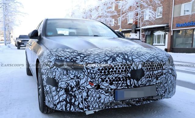 先来看一下本次曝光的新车谍照外观。新车延续奔驰家族经典设计语言,在现款车型基础上进行细节微调,更贴合当下豪华车型的设计趋势。前脸依旧配备标志性的大尺寸格栅,预计继续提供“满天星”点阵式中网选项,格栅周围的镀铬饰条进行了细化处理,质感更显精致。核心调整集中在灯组部分,大灯组内部光源重新设计,融入标志性的“三叉星辉”元素,点亮后辨识度大幅提升,同时换装新样式的LED日行灯,与格栅无缝衔接,视觉上拉伸横向宽度。前包围造型也进行了微调,进气导流槽线条更凌厉,兼顾空气动力学性能与运动氛围。